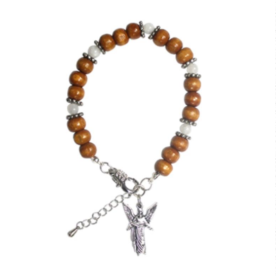 Pulsera de bolas de madera con dije de arcángel Gabriel